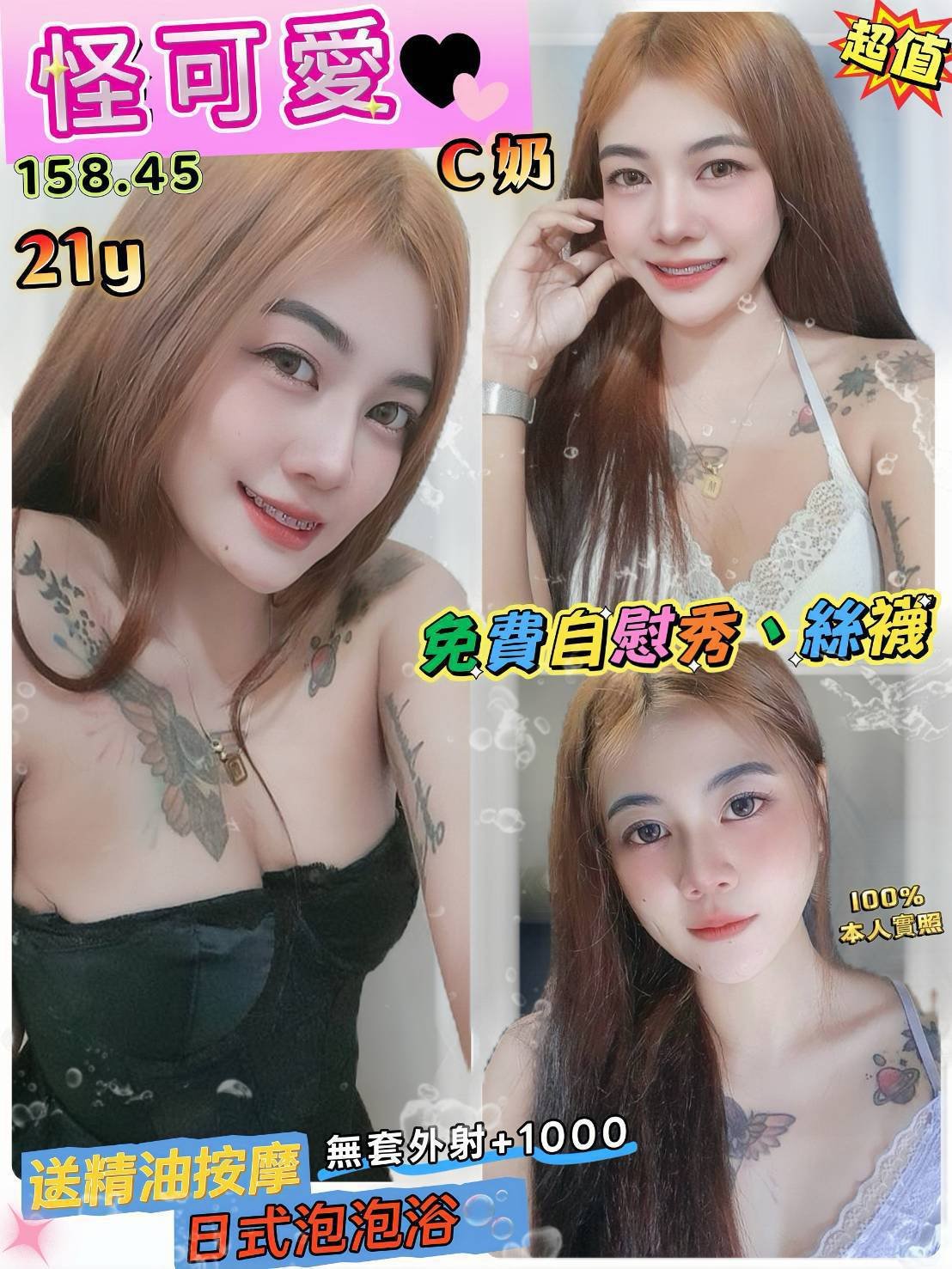 鴛鴦浴 無套吹 戴套做 胸推 臀推 奶炮 按摩 品鮑 舔蛋 冰火 兩男一女(雙龍) 自慰秀 水吹簫 絲襪 2s+0.5k 口爆+0.5k顏射+0.5k無套外射+1K 買兩節送1S 買三節送一節 買五送三節(包夜23:00開始)