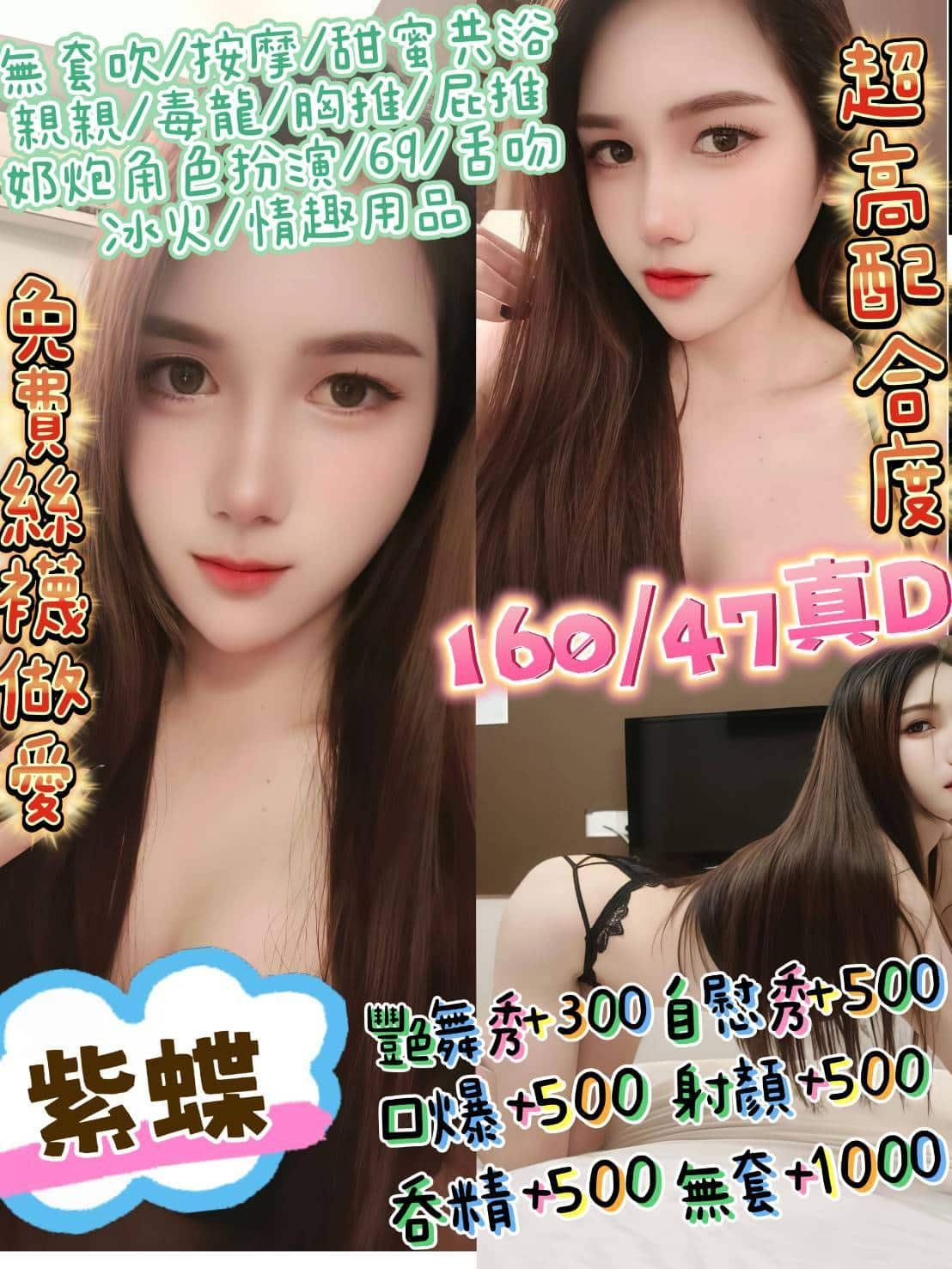 無套吹 戴套做 鴛鴦浴 小親嘴 舌吻(視衛生) 69 品鮑 按摩 奶炮 胸推 臀推 舔蛋 情趣角色扮演 非侵入式情趣用品 冰火 毒龍 絲襪 艷舞秀+0.3K 口爆+0.5K 射顏+0.5K 吞精+0.5K 自慰秀+0.5K 無套內射+1K 攝影+2K 買兩節送1S 買三節送一節 買五送三節(包夜23:00開始)