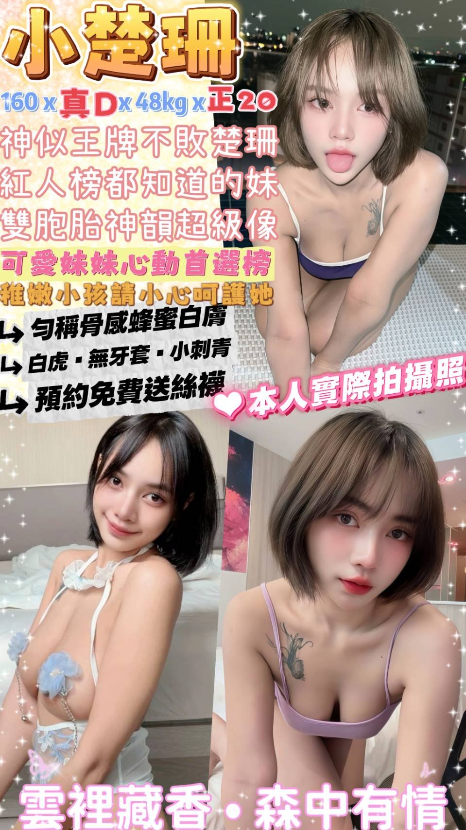 無套吹 戴套做 鴛鴦浴 小親嘴 69 品鮑 按摩 奶炮 胸推 臀推 舔蛋 絲襪 自慰秀 買兩節送1S