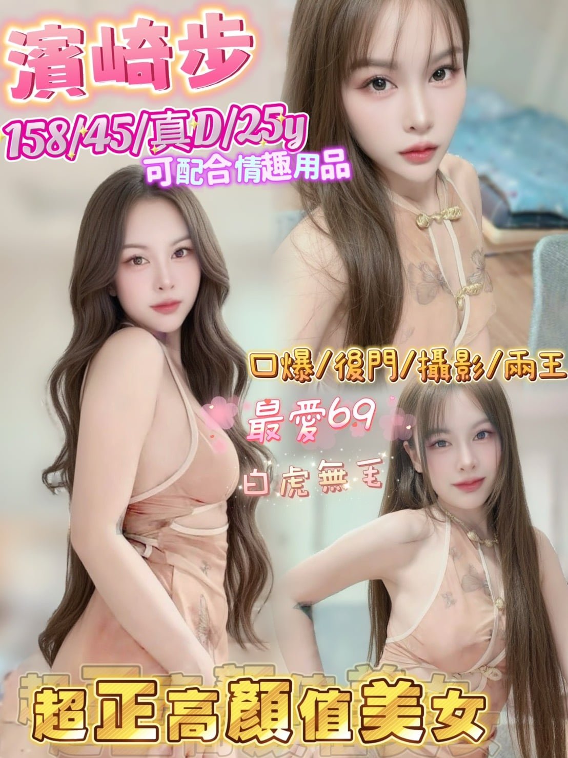 無套吹 戴套做 鴛鴦浴 小親嘴 69 品鮑 按摩 奶炮 舔蛋 胸推 臀推 足交 兩男一女(雙龍) 絲襪+0.1K 口爆+0.5K 後門+1K 攝影+2K 買兩節送1S 買三節送一節 買五送三節(包夜23:00開始)