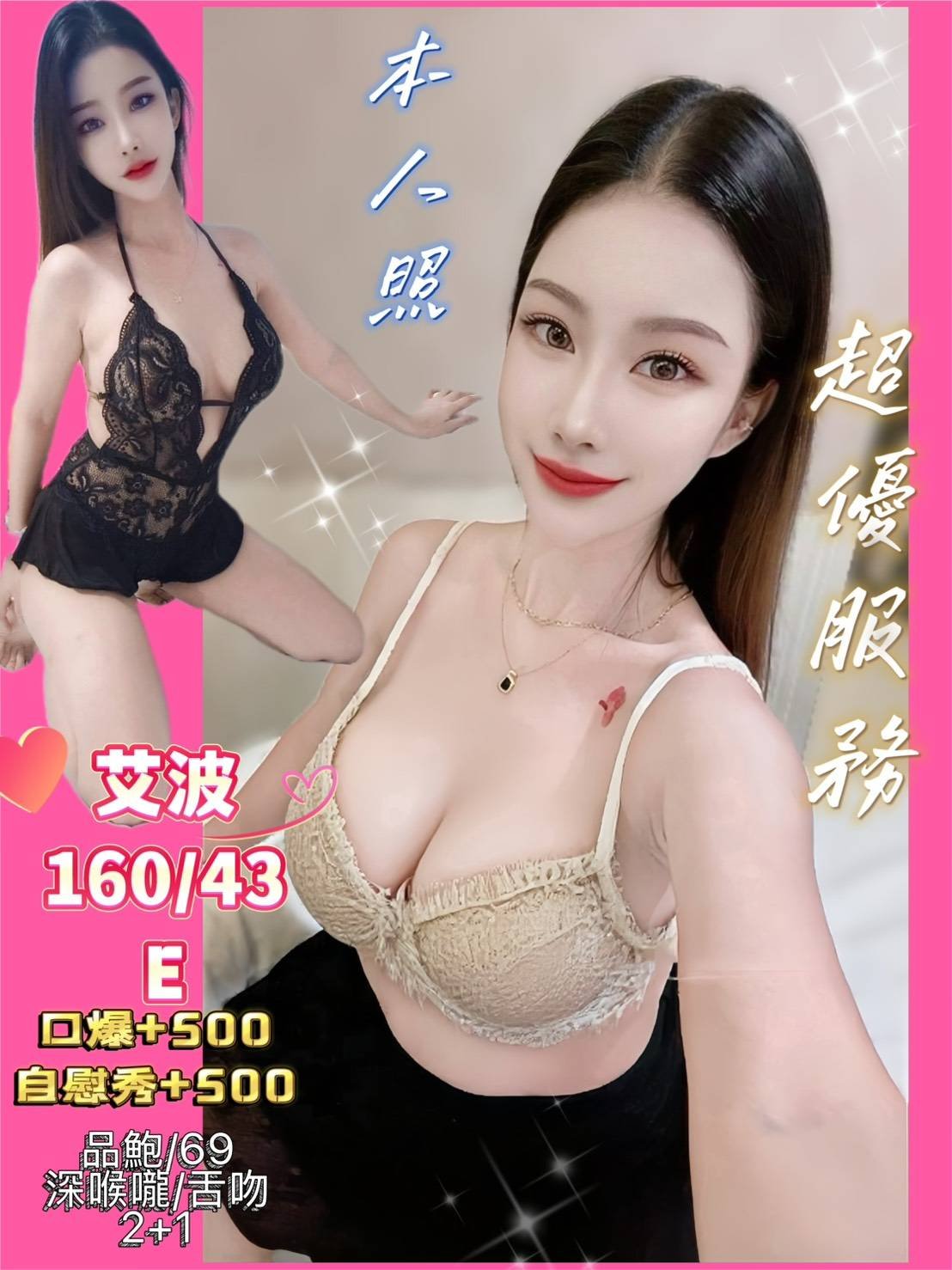 無套吹 戴套做 鴛鴦浴 小親嘴 舌吻(視衛生) 69 品鮑 口爆+0.5K 自慰秀+0.5K