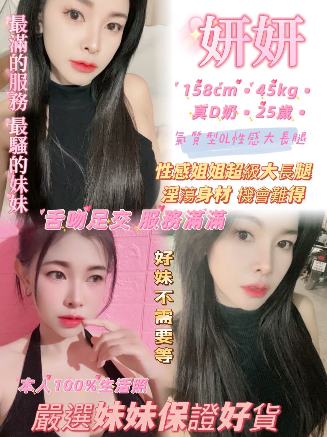 無套吹 戴套做 鴛鴦浴 小親嘴 舌吻(視衛生) 69 品鮑 按摩 胸推 臀推 舔蛋 奶炮 絲襪 足交+0.2K 自慰秀+0.5K 買兩節送1S 買三節送一節 買五送三節(包夜23:00開始)